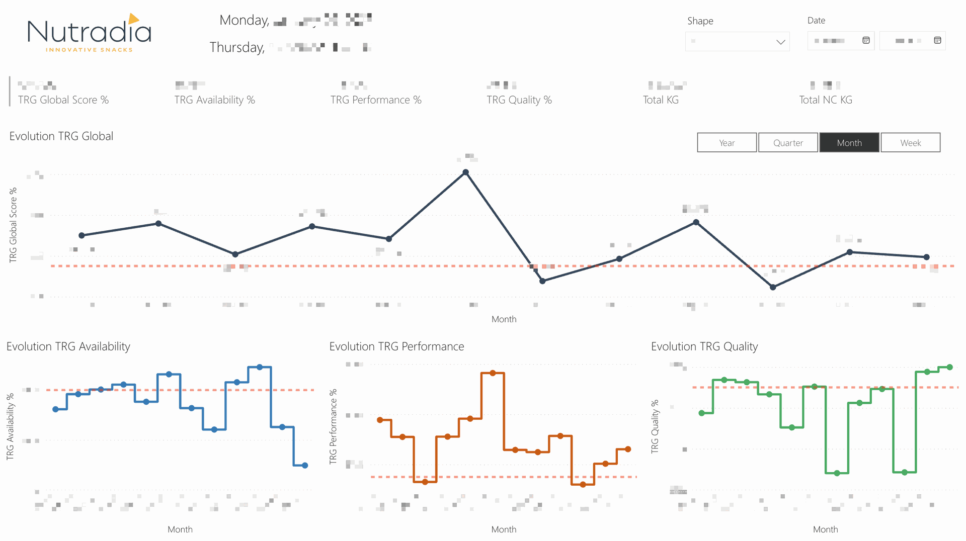 - Production : Affichage des performances en temps réel sur les lignes (pour les équipes) et analyse des TRG (pour le management stratégique).